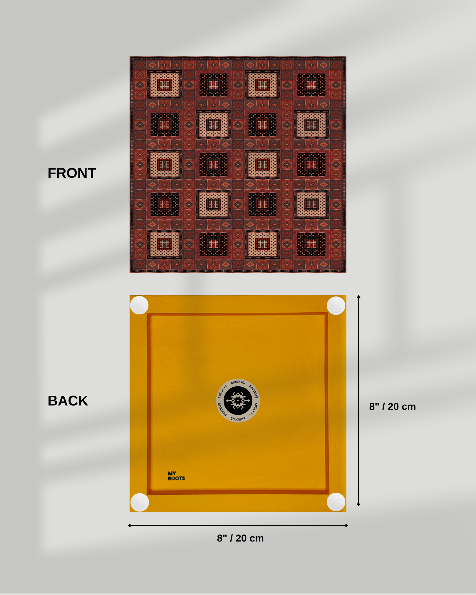 Bring centuries of artistry into your home with this 4-tile set inspired by the weaving traditions of Azerbaijan. Featuring the bold and symbolic Garagoyunlu, the geometric precision of Ganja, and the rich elegance of Karabakh carpets, each tile captures a unique story of heritage and craftsmanship. Handcrafted on premium wood with a canvas print finish, these tiles create a gallery-like presence on your wall—whether displayed together or as individual accents.