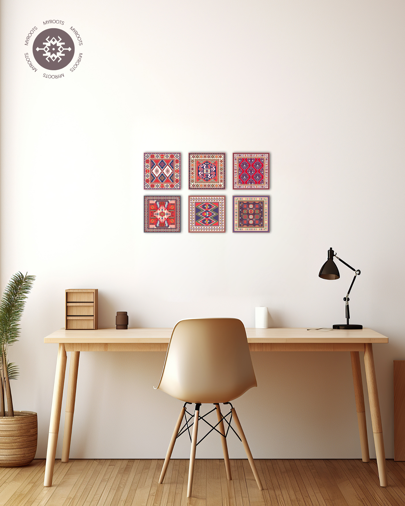 Celebrate beauty, culture, and belonging with this 6-piece wall décor set. Each tile highlights a unique design drawn from the heritage of Azerbaijani carpet weaving.