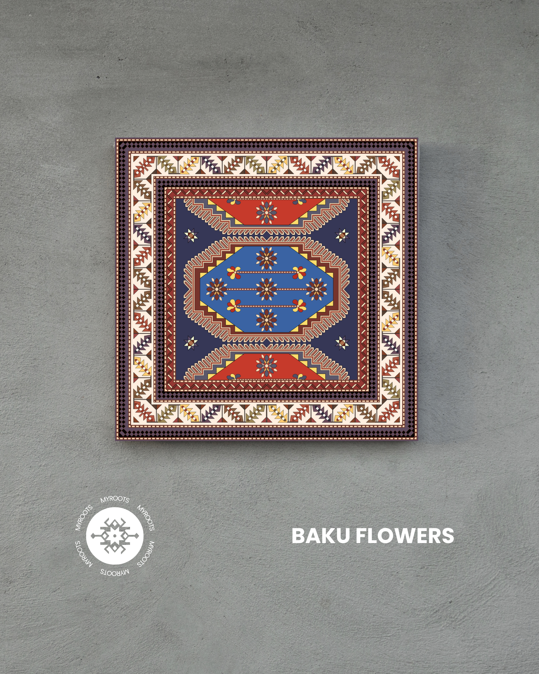The "Baku Flower" tile is a beautiful representation of the intricate artistry of the Baku carpet-weaving school, known for its harmonious blend of geometric precision and floral motifs. This design is a timeless nod to the vibrant gardens and cultural richness of the Baku region, capturing its essence with remarkable detail and color.