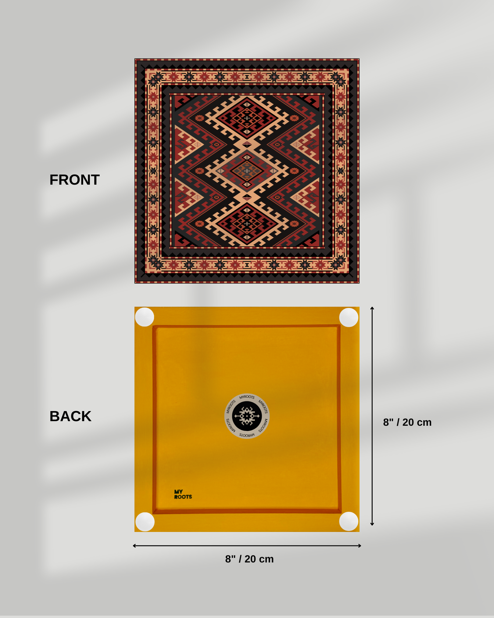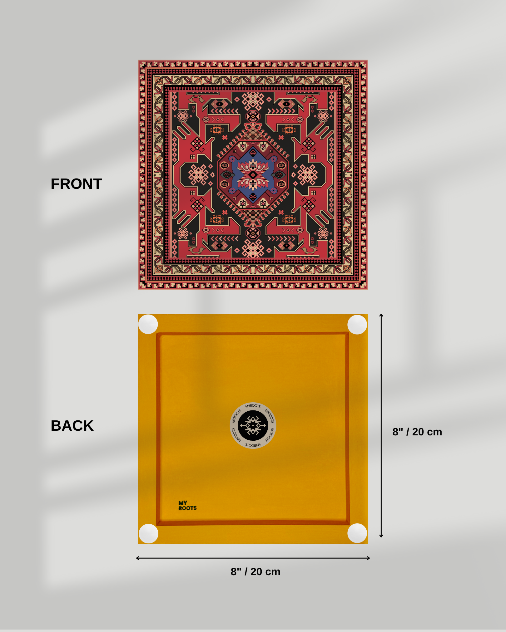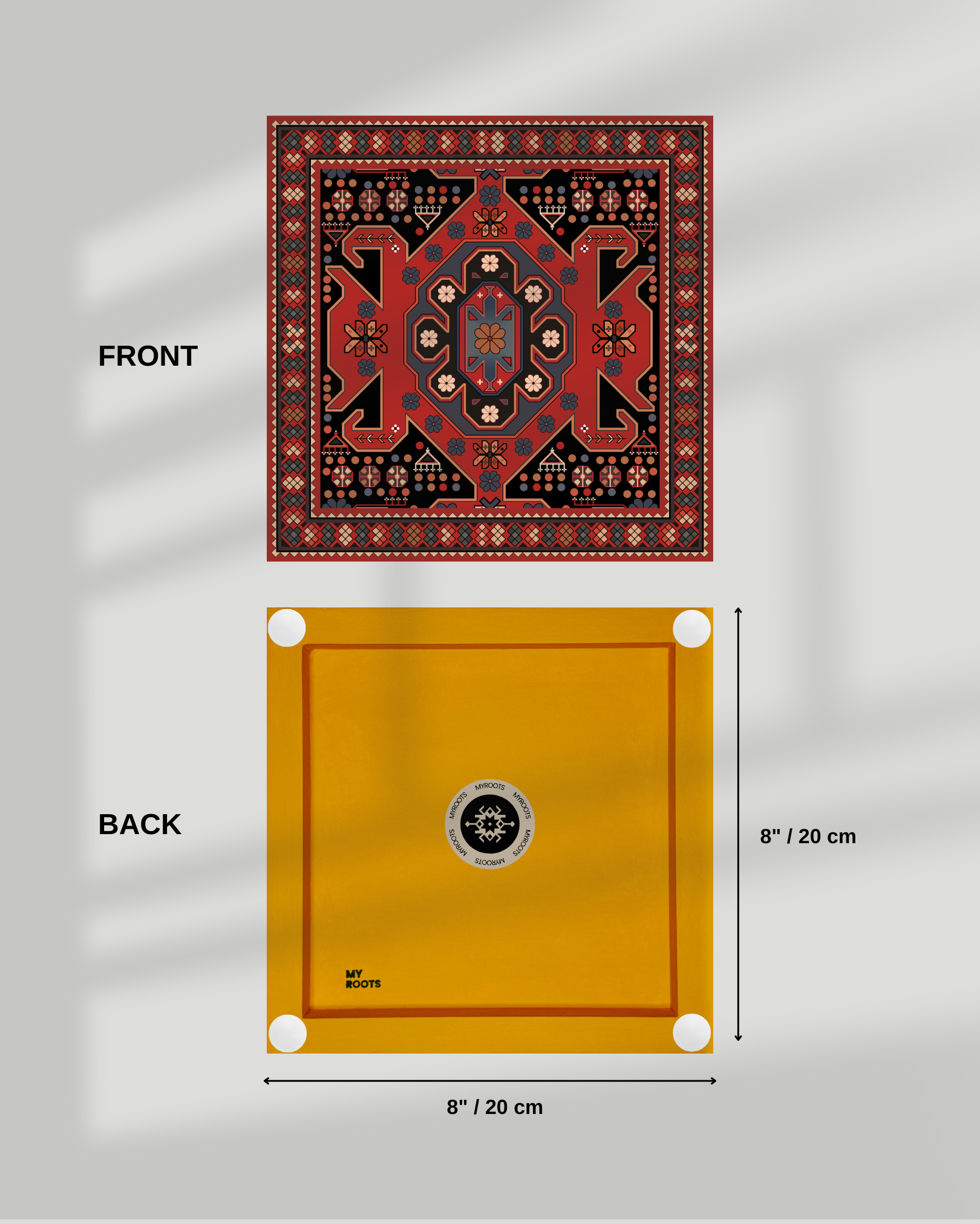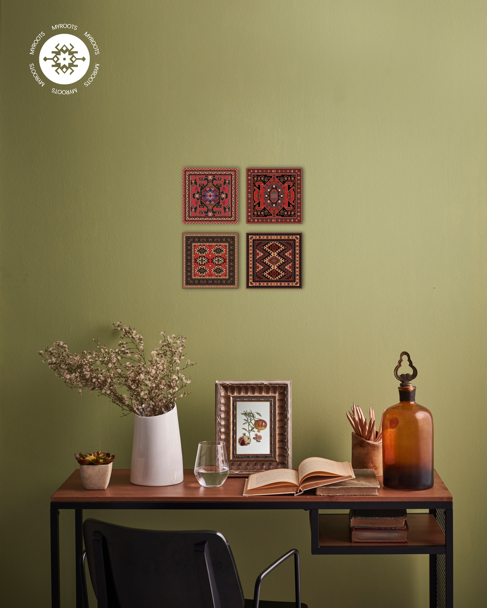 Celebrate the beauty of Azerbaijani weaving traditions with this 4-tile set, featuring timeless designs from the Guba and Shirvan schools. Each 8"x8" tile is made with premium wood and canvas, turning ancient artistry into modern home decor.
