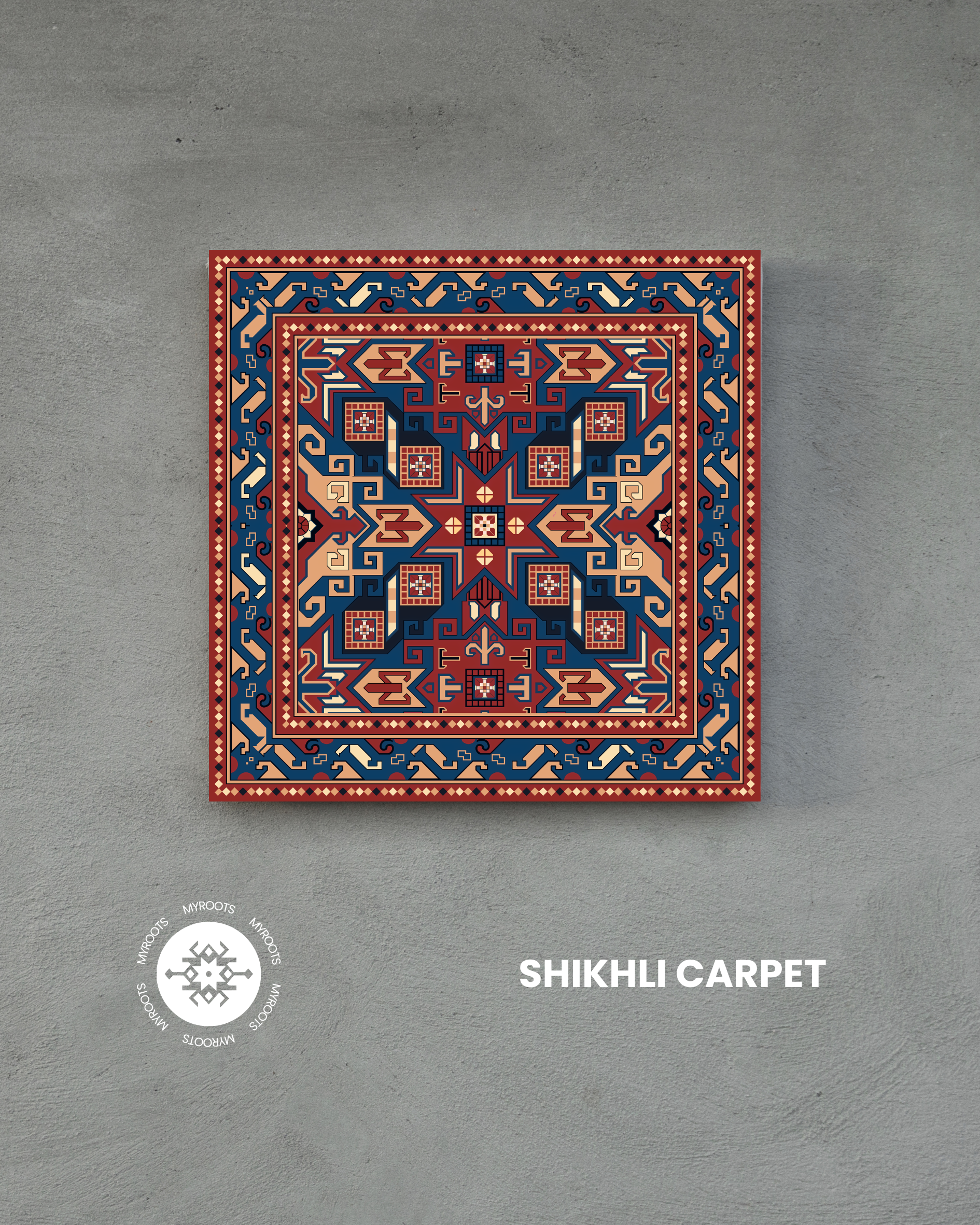 Discover the timeless elegance of the Shikhli Splendor tile, a breathtaking design inspired by the iconic Shikhli patterns of the Gazakh region. This tile features intricate geometric motifs and medallions in a rich, earthy color palette, reflecting the deep cultural roots and artistic mastery of traditional weaving. The harmonious interplay of shapes and symbols tells a story of heritage, unity, and the enduring beauty of craftsmanship.